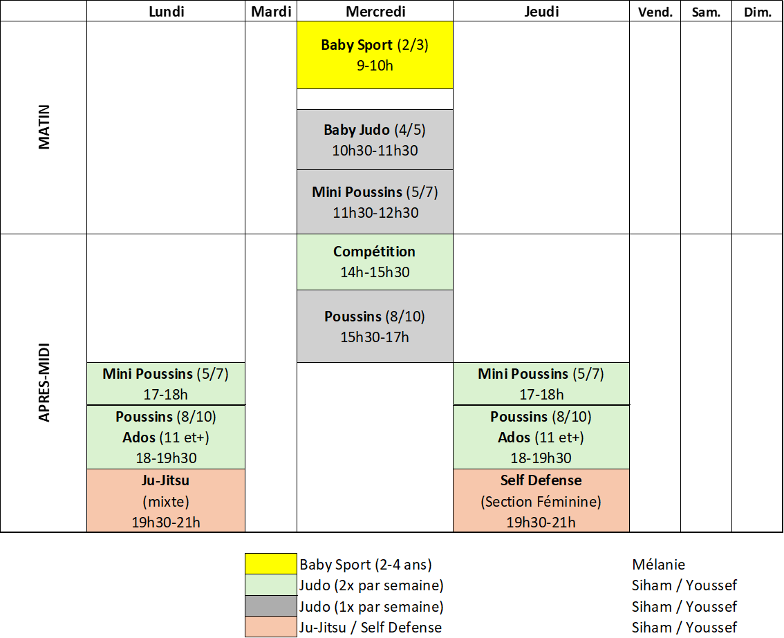En complément des cours existants (qui ne changent pas) BABY SPORT le mercredi et JUDO le lundi et le jeudi :
